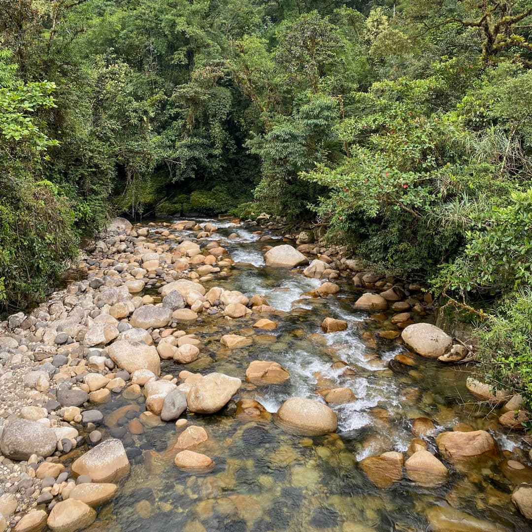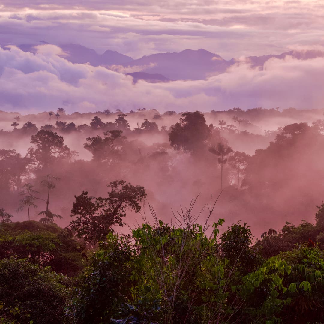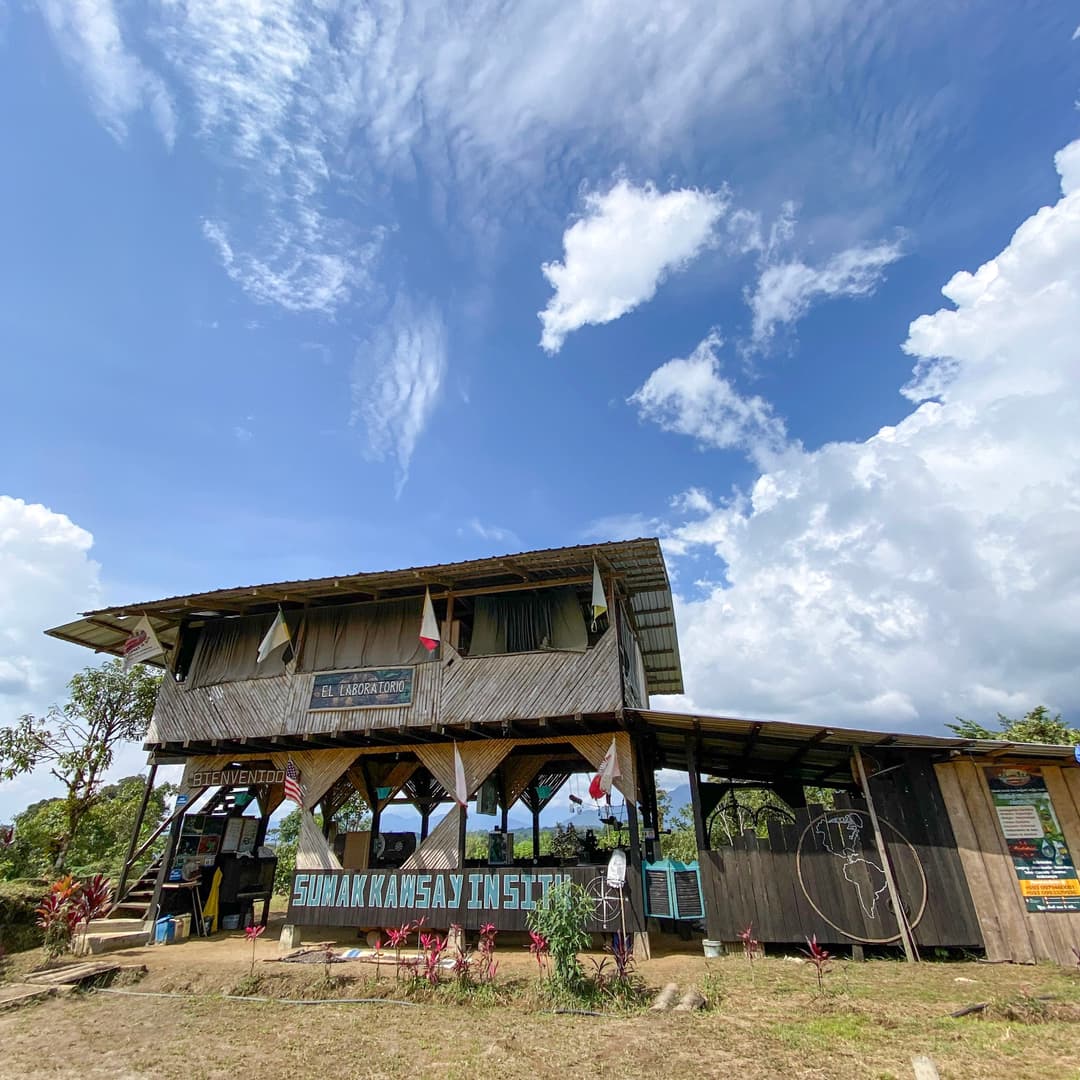 - Covered camping area, tent, mattress, blanket, pillow, scientific laboratory, and facilities at the Sumak Kawsay In Situ reserve.